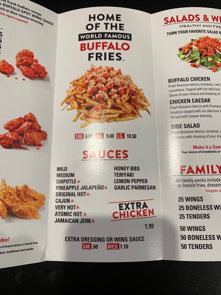 - Bite into their signature Buffalo Fries: Golden, crispy, and topped with hand-cut chicken, customized with your choice of sauce.